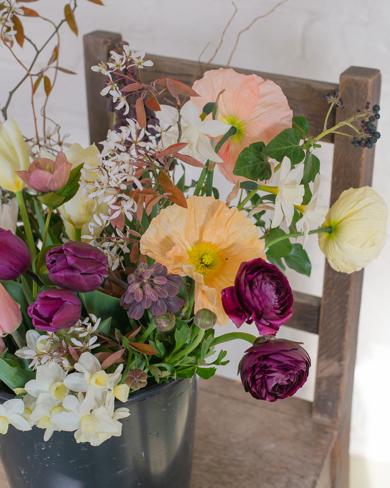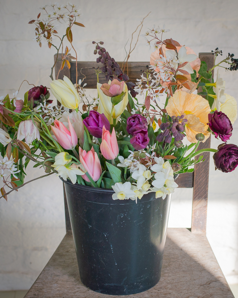 A bucket of exquisite, seasonal flowers and foliage, hand-picked from our flower farm. Abundant and evocative of English gardens and hedgerows, you’ll want to bury your nose into these! Each bucket contains a beautiful selection of flowers and foliage for you to be able to create a fabulous arrangement at home. Our buckets contain at minimum of 50 stems – perfect for making one large arrangement or a collection of smaller ones. Please note: All flowers used are seasonal and grown on the farm. These images indicate the size of a bucket but the flowers used will depend on the…